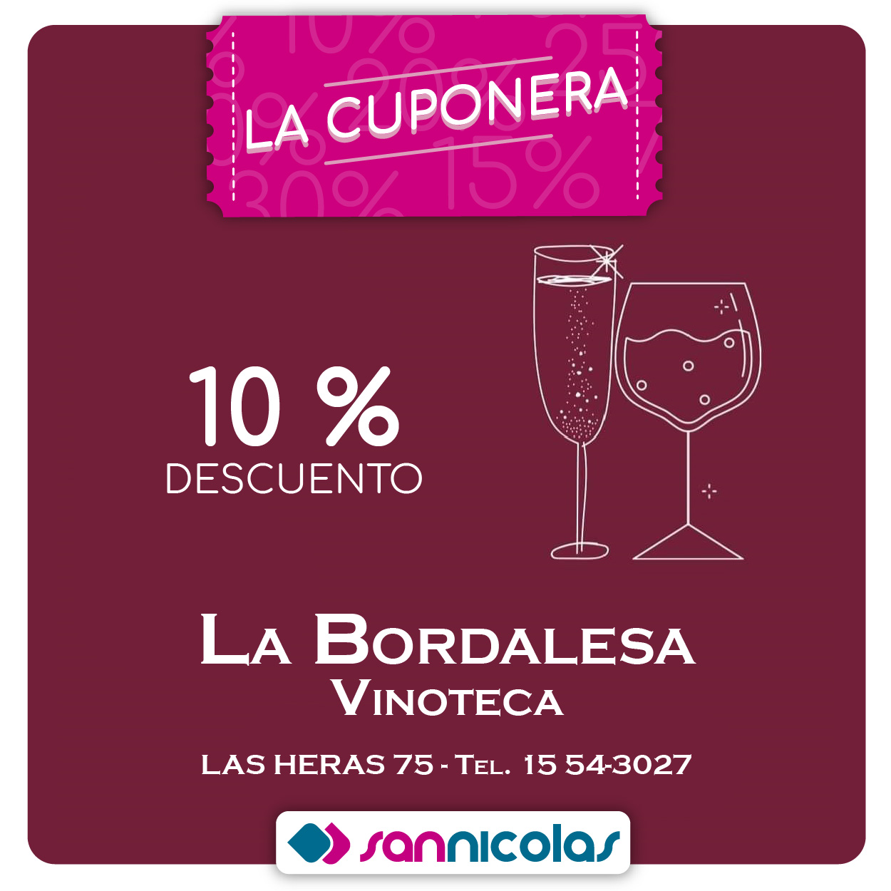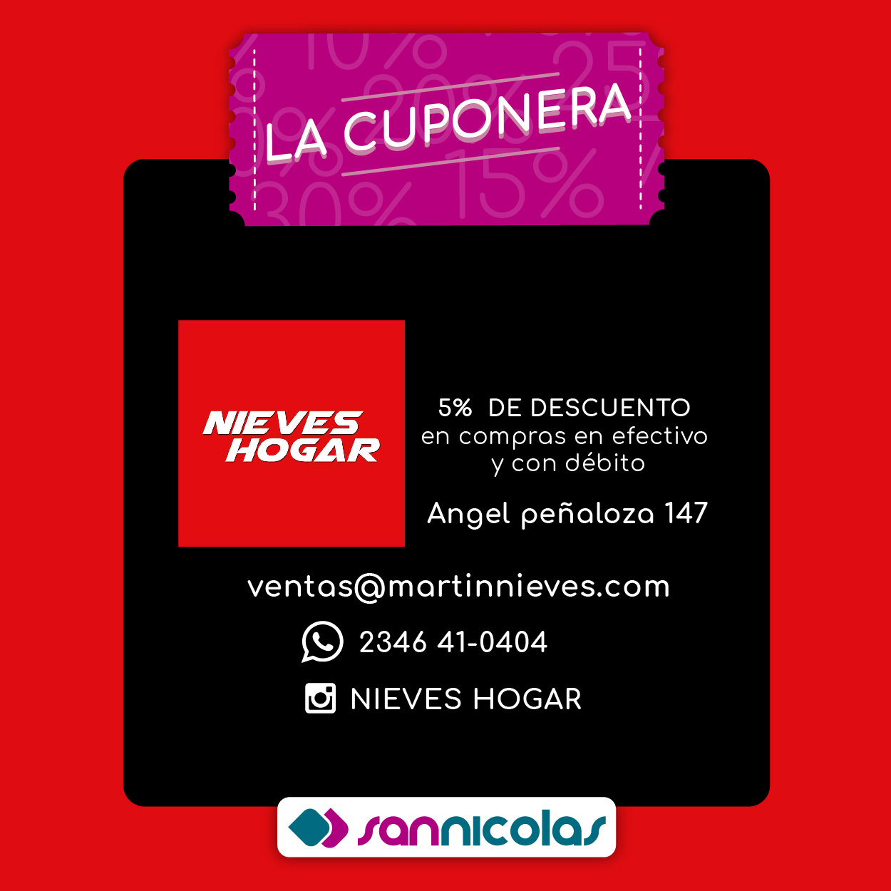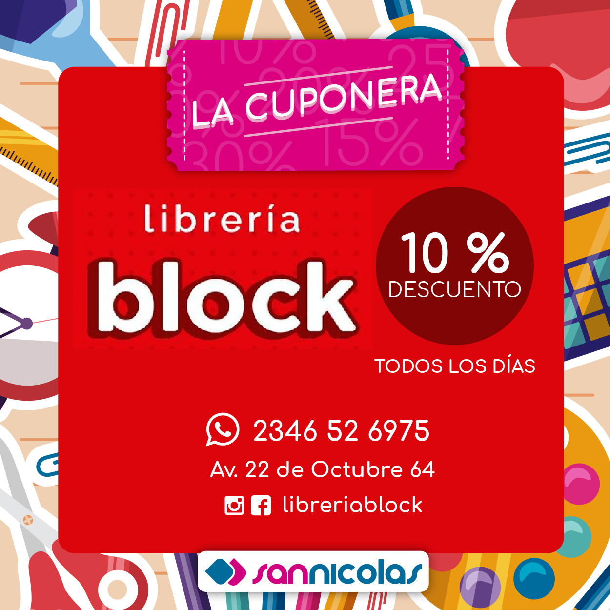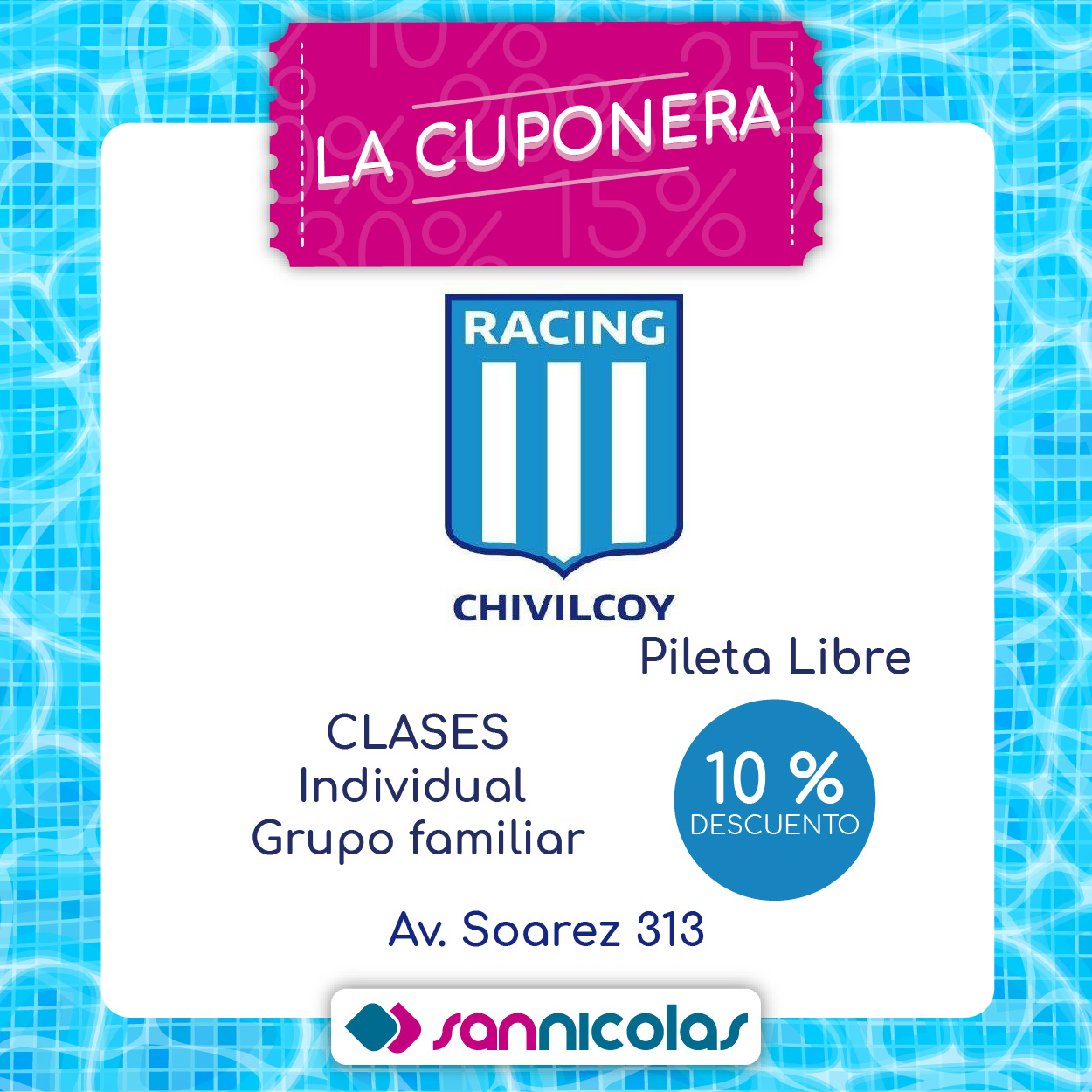 Si sos socio de San Nicolás, con el pago de tu cuota, vas a recibir nuestra Cuponera con la que vas a poder obtener INCREÍBLES DESCUENTOS en librerías, supermercados, restaurantes e indumentaria, entre otros.